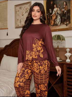 Maroon Floral Print Full Sleeves with floral Printed pajama Night Suit