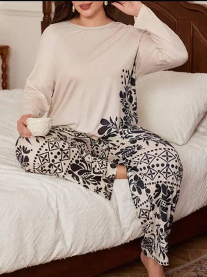 Off White Floral Print Full Sleeves with floral Printed pajama Night Suit