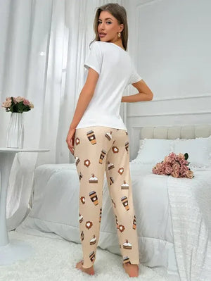- Product Name : White Coffee Cake Printed Half Sleeves Night Suit